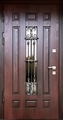 Дверь с отделкой МДФ, 3х-камерным стеклопакетом и кованой решеткой